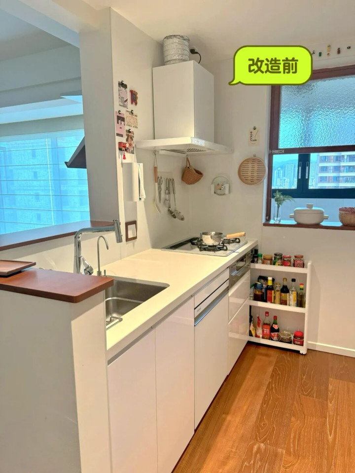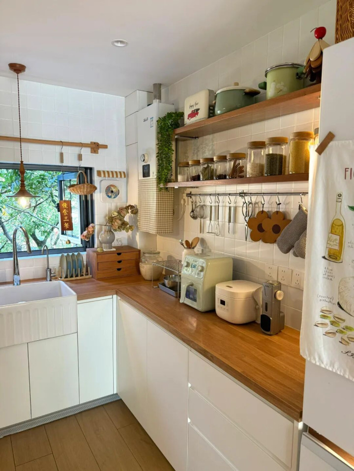 去闺蜜家串门,才发现厨房收纳居然能这么“聪明”!她家没装吊柜,却把厨房收纳得整整齐齐,整个空间敞亮又通透,视觉上显大2平米。