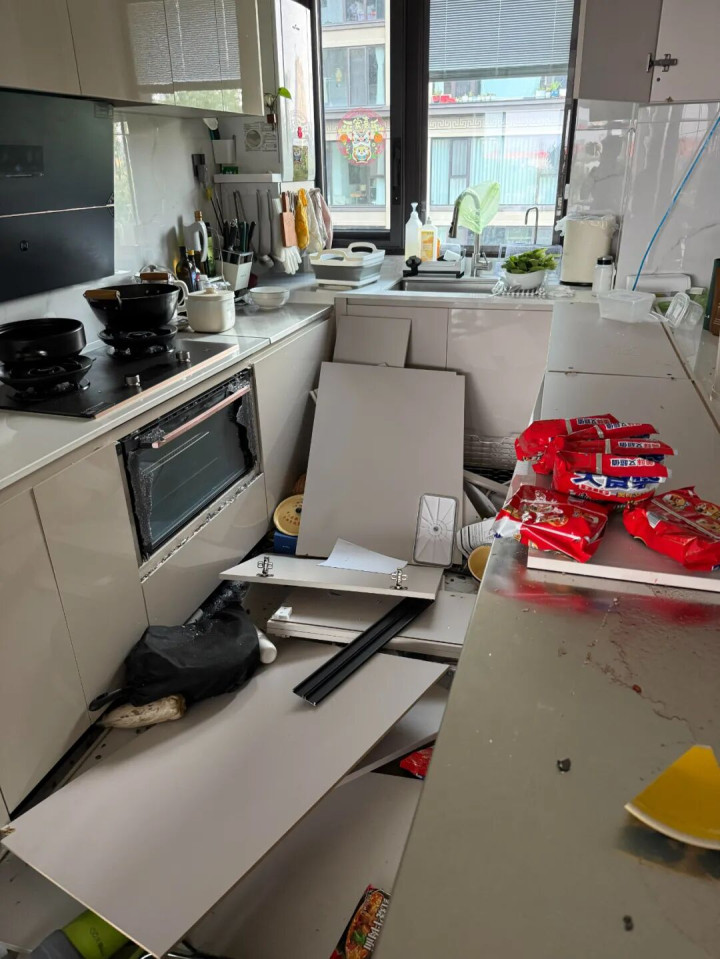 网友@蝴蝶结小bagel 有同样遭遇,家里厨房吊柜本来实用性就一般,自己个头又比较矮,放东西拿取都很不方便,有天还全部掉下来了,把烤箱都砸坏了,真的好可怕。