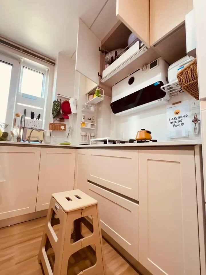 当时我暗下决心,等换第二套房,厨房坚决不做吊柜,就照着闺蜜家抄作业!