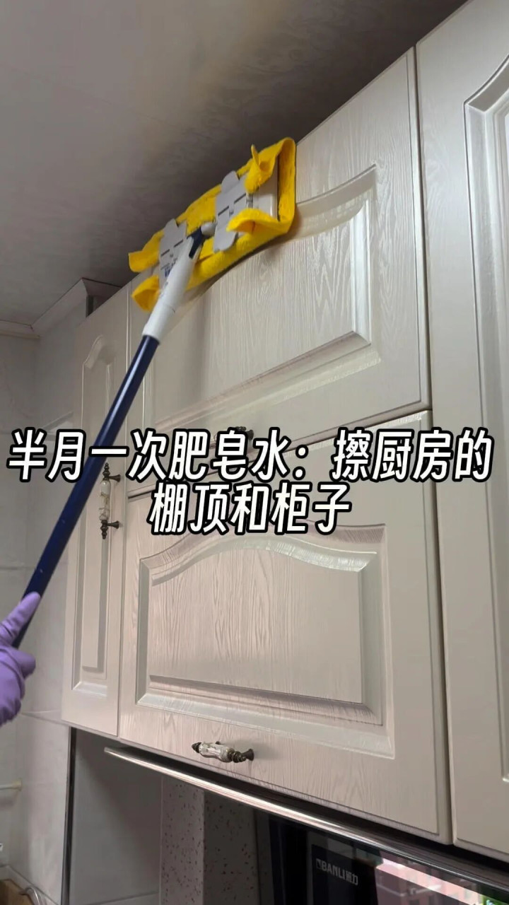油烟机旁的吊柜底部,柜门,三个月就能攒出一层黏糊糊的油膜。如果没做到顶,顶上还会积灰积油加蜘蛛蟑螂,清洁时搬凳子爬高爬低,腰酸背痛还未必能弄干净。