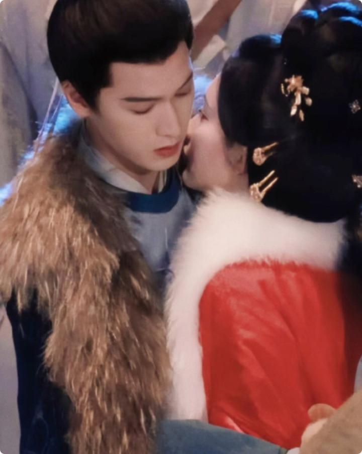 最让网友疯狂的,莫过于二人雪中贴脸相拥的名场面,李昀锐将孟子义紧紧裹进自己的披风里,用宽大的衣袖为她挡住风雪,两人鼻尖相触,距离近到仿佛下一秒就要吻上,因拍摄角度的巧妙,这一幕还被不少网友误读成“真亲了”。